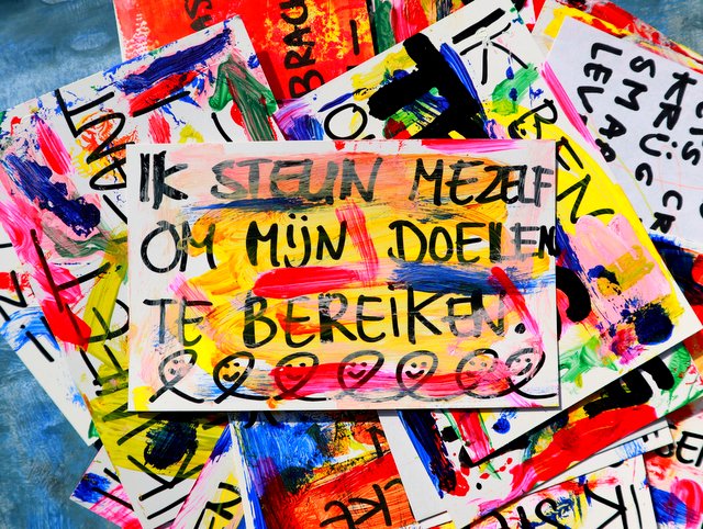 4. Schrijf de affirmaties op de kaartjes met een dikke zwarte stift.