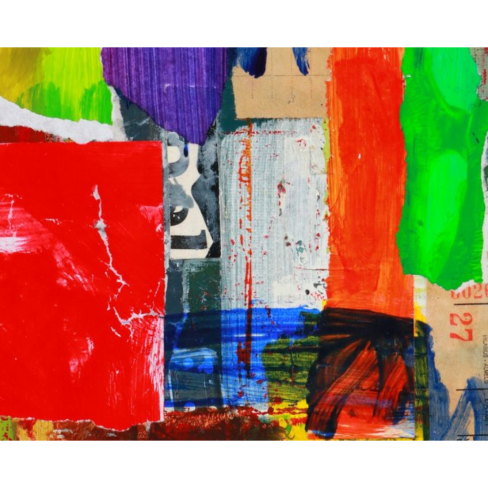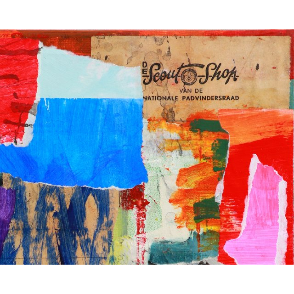 Collage kunstwerk op schildersdoek