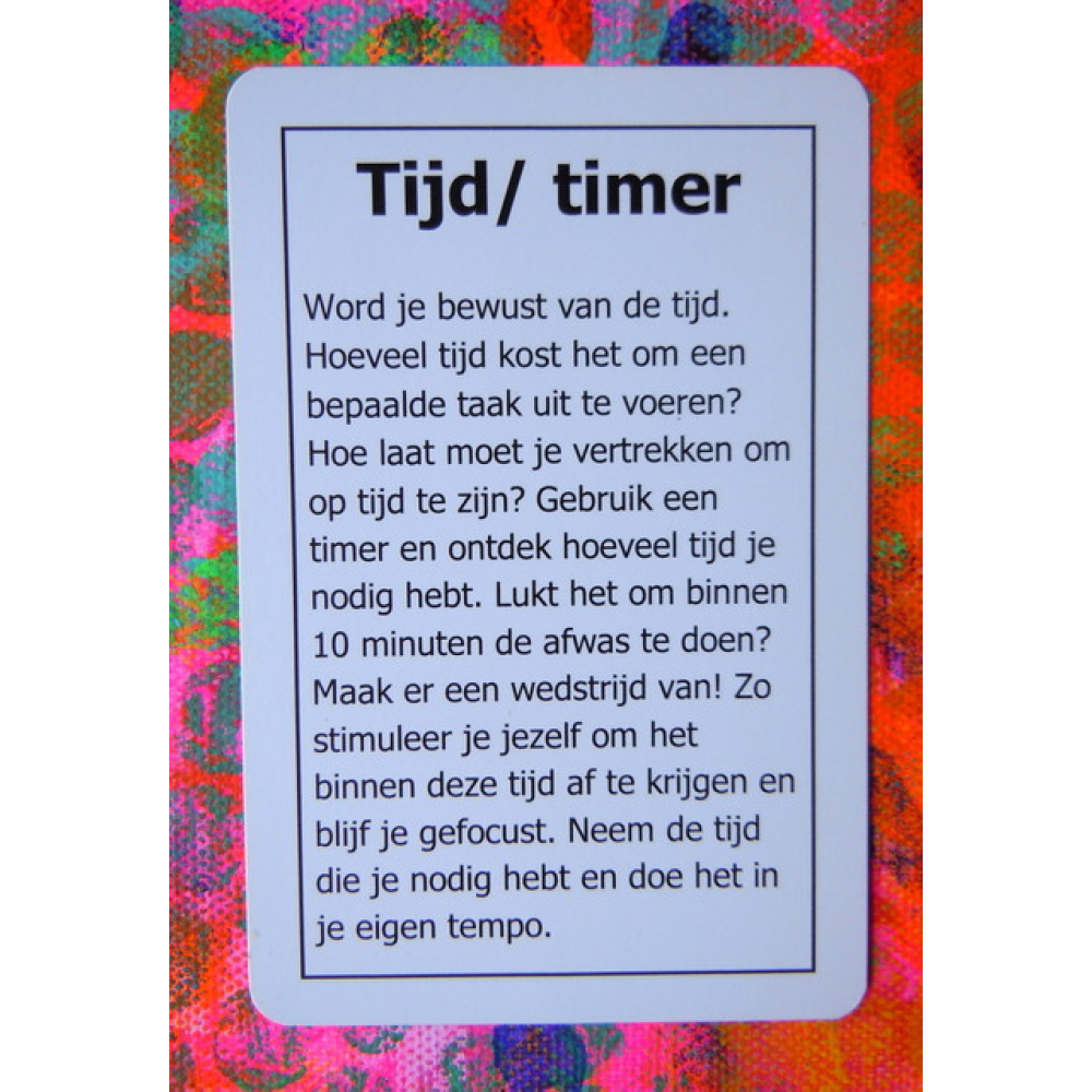 De auteur heeft zelf ADHD en dat zie je terug in de kaarten: de praktische opdrachten zijn inspirerend en sluiten aan bij de manier van leven en werken van mensen met AD(H)D.
