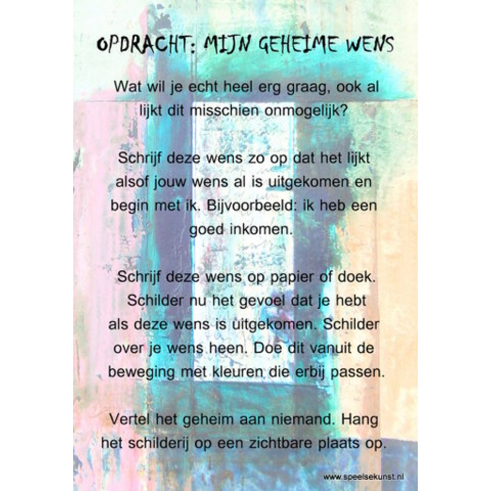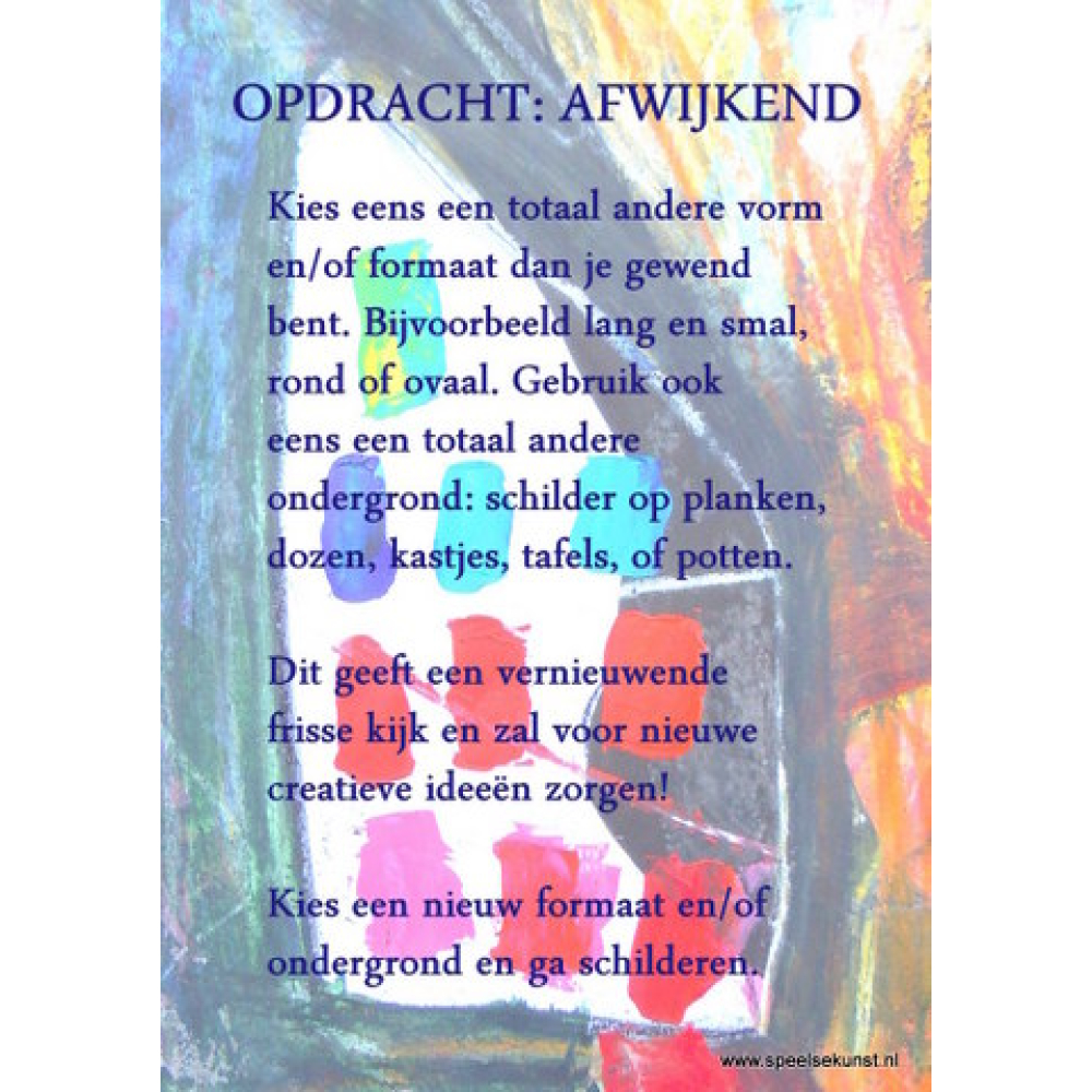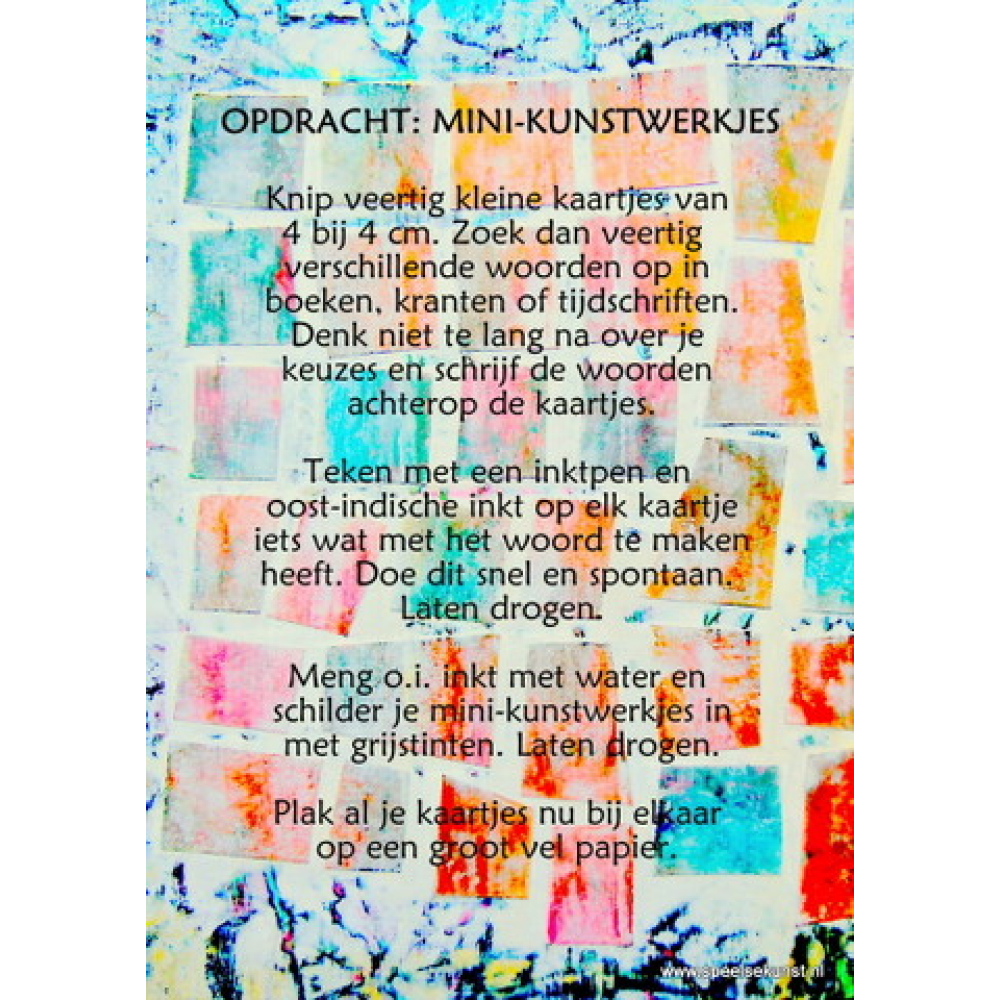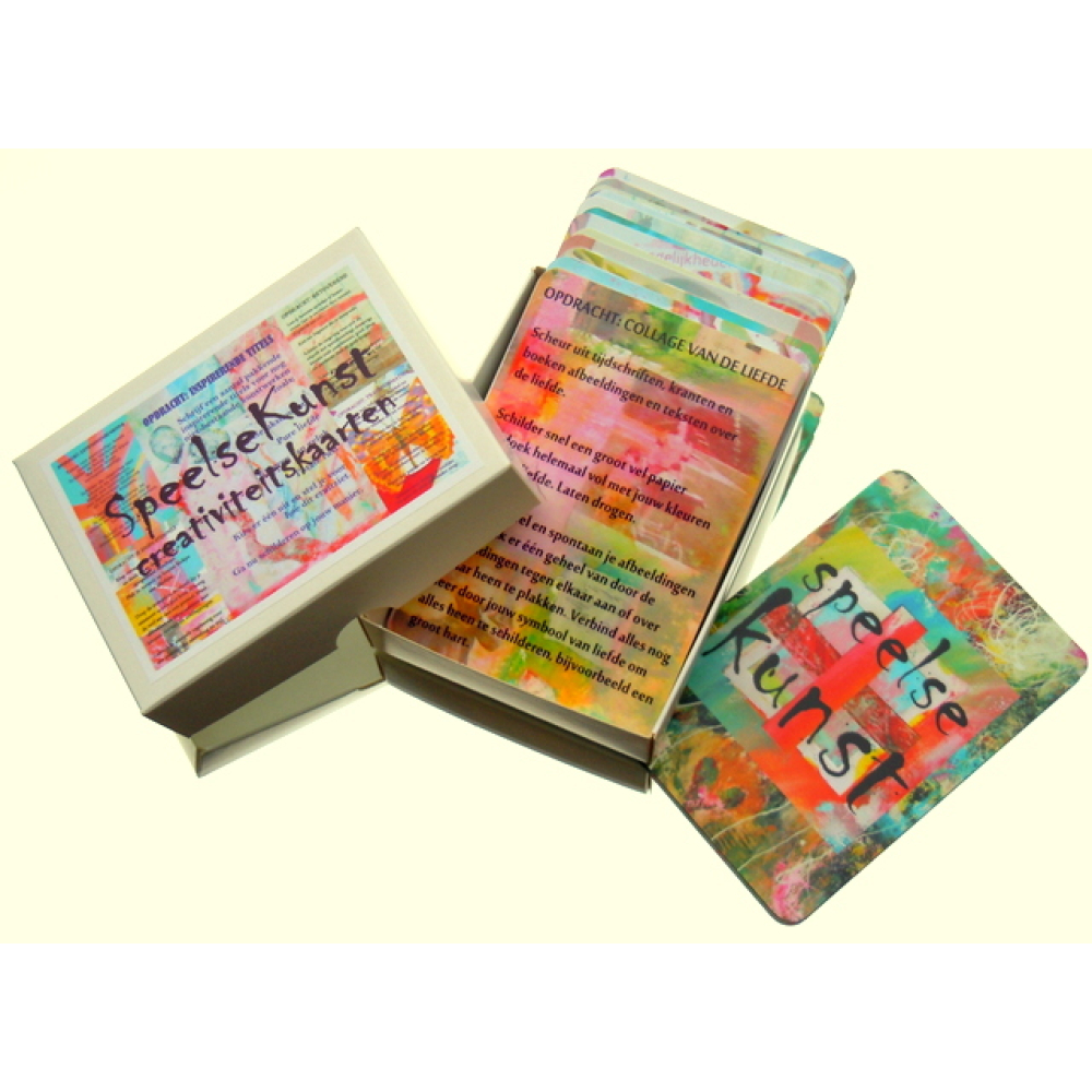 SpeelseKunst creativiteitskaarten zijn 52 kaarten met creatieve opdrachten voor schilderen, tekenen, collages maken, druktechnieken en gemengde technieken (mixed media). De opdrachten zijn eenvoudig van opzet en toepasbaar op ieder niveau.