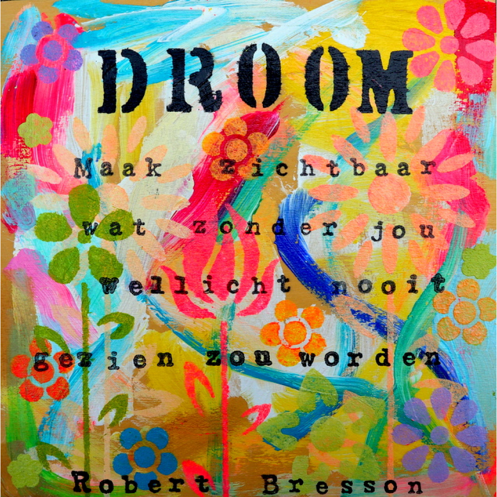 Mixed media spreukentegel op hout/ triplex van 4 mm